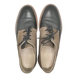 Pre-loved men’s Lacoste Sherbrooke leather canvas mixed media two tone dress oxford shoes.