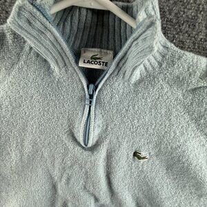 Lacoste Men Sweater Pullover 1/4 Zip Light Blue Knit Pure Wool Croc Logo Adult