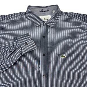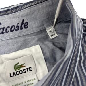 This is a pre owned Lacoste Mens 2XLT Blue Striped Long Sleeve Button Down Shirt. This item is in good condition with minimal or no signs of use.
