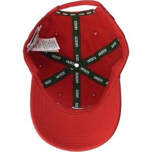 Lacoste Mens Adjustable Organic Cotton Twill Cap, Red, One Size NWT