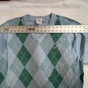 Lacoste Mens Argyle V-Neck Pullover Sweater Size 8 Blue Green 100% Cotton F5178