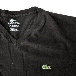 Lacoste Men’s Black V-Neck T-Shirt - Size 4 (Medium) Lightweight Cotton