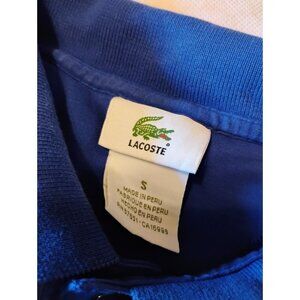 Lacoste Men's Blue Short Sleeve Polo Shirt Small. Measures 22 inches across from underarm to underarm. Length is 28 inches.