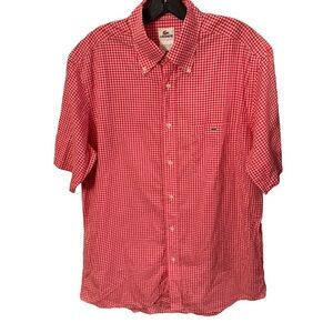 Lacoste Men’s Button Down Shirt Red/white Check Short Sleeves Logo Sz 42 Large
