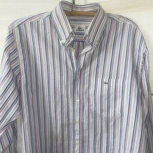 Lacoste Men’s Button Up Shirt Large 40 Multicolor Striped Alligator Logo