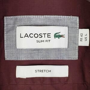 Stylish Lacoste shirt in burgundy. Features slim fit and stretch fabric. Ideal for casual wear.