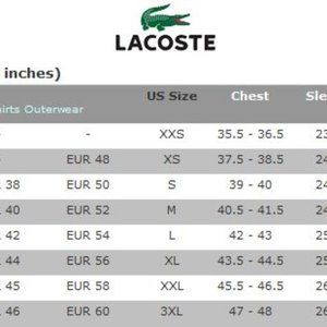 French born, Lacoste fit is based off of European size conversion, we suggest sizing up for a more relaxed fit
