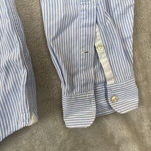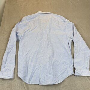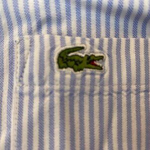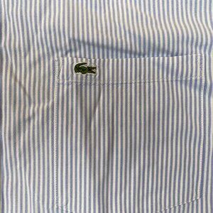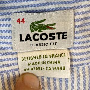 Lacoste Mens Dress Shirt Size XL 17 Neck Classic Fit Long Sleeve Blue Striped Fo