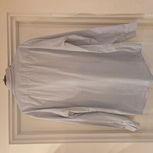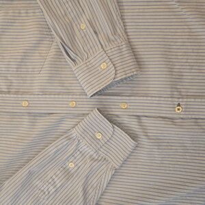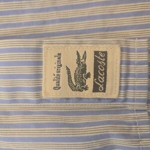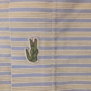 Lacoste Mens Embroidered Striped Classic Cotton Button Down Shirt Blue White XXL