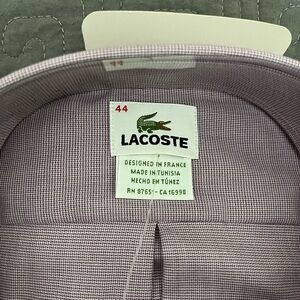 Stylish Lacoste shirt in a soft lavender shade. Ideal for casual outings or formal events. Features a pocket at the front. NWT. In great condition - no holes or stains. Comes from a smoke free home.