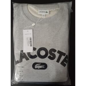 Lacoste Men's Long Sleeve Graphic Crew Neck Sweatshirt, Silver Grey Chine, 2XL