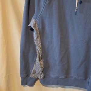 Lacoste Men's Medium Blue Sweatshirt with Tattersall Plaid Hood Sides