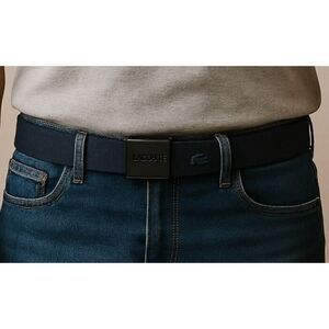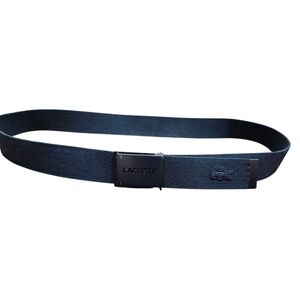 Lacoste Men’s Navy Blue Webbed Belt | Silver Logo Buckle Casual Designer Accesso