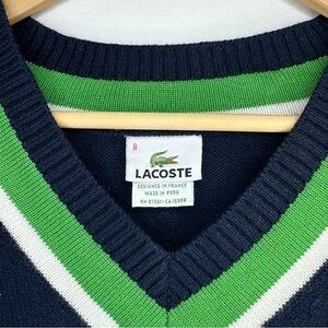 Lacoste Men’s Navy Cotton & Wool V Neck Sweater 8 US XXXL 3XL Preppy Stripes