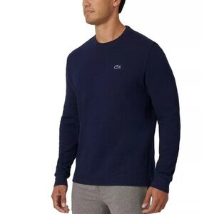 Lacoste NAVY Men's Waffle-Knit Thermal Sleep Shirt size medium