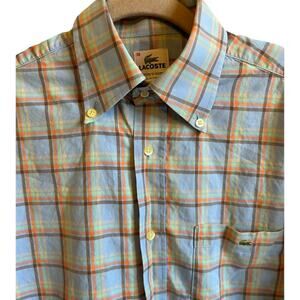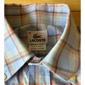 Lacoste Mens Plaid Long Sleeve Button Down Shirt Sz 38 Alligator Logo Preppy S