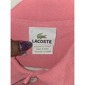 The product is a Lacoste men's polo shirt in a pink color, size 2XL or 7 (depending on the sizing measurements). This stylish shirt is designed for men and features the signature Lacoste brand. The regular fit and classic polo design make it a versatile and comfortable choice for everyday wear.