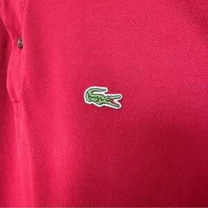 Keywords: Lacoste polo, red polo shirt, men's casual wear, short sleeve, cotton polo, classic collar, two-button placket, iconic logo, regular fit, machine washable, pre-owned polo, men's fashion, casual occasions, comfortable polo, stylish polo.