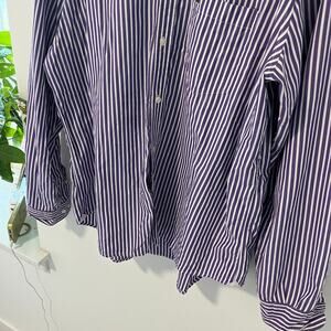 Lacoste Men's Purple & White Stripe Button Up Top Size 45