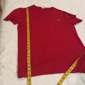Elevate your casual wardrobe with this Lacoste men's red t-shirt. Featuring a classic design and comfortable fit, it's perfect for everyday wear. Size 4 is a size M in USA 🇺🇸