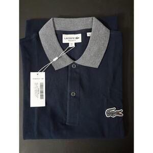 Lacoste Men's Short Mini Pique Regular Fit Caviar Croc Polo Shirt Navy Blue S