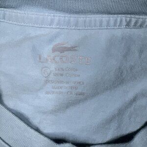 Lacoste Men's Size 6 Light Blue Casual Short Sleeve Crew Neck Cotton T-Shirt. Condition is Pre-owned - Good. Shipped with USPS Ground Advantage. There are no holes but there is a slight discolor in the pit areas. It has already been washed and ready to go.