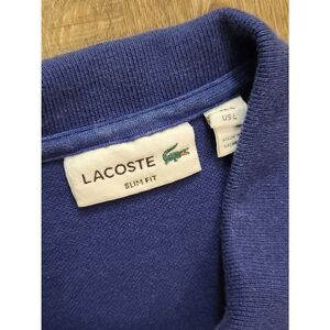 Lacoste Men's Slim Fit Large 40 in chest Piqué Polo Blue Cotton alligator Knit. good pre-owned condition no stains no holes measurements provided in pictures are approximate please check measurements for proper fit as size can vary from age and washing