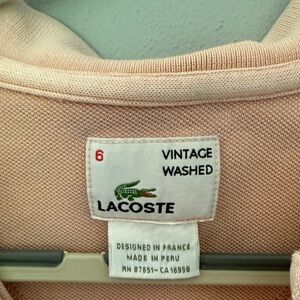 Classic Lacoste polo in a gentle salmon shade. Vintage washed. Features iconic logo. Ideal for casual wear.