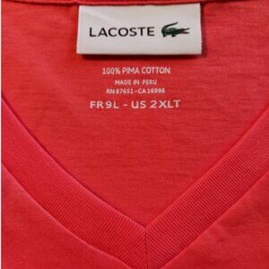 Lacoste Men's T-Shirt 2XLT Big & Tall V-Neck Pima Cotton Clear Pink TH7512 NWT
