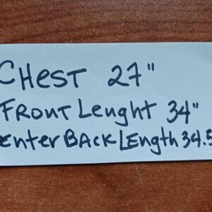 Measurements: Chest 27", Front Length 34", Center back Length 34.5"
