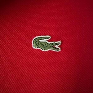 Bold red Lacoste polo. Iconic crocodile logo. Casual and stylish.