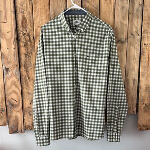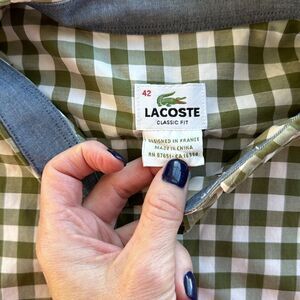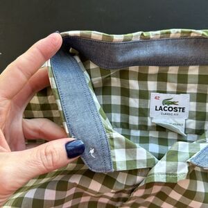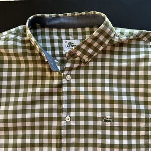 Lacoste Men’s 42 XL Button Down Long Sleeve Green White Checkered Gingham Shirt