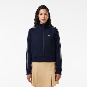 The iconic Lacoste zipped jacket, now in interlock piqué with a high collar, contrast piping, and a sporty cut. A premium model, made from high-end cotton for the ultimate in comfort.
