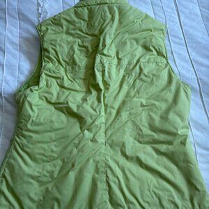Lacoste Puffer Vest Womens 44 Large Green Zip Up Stand Up Collar Quilted Lightweight-wear as seen