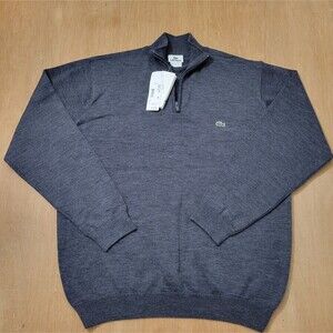 Lacoste Pure Wool Knit 1/4 Zip Pullover Sweater Gray Size Large Mens NWT