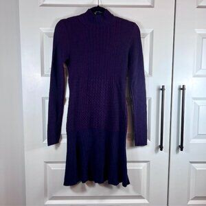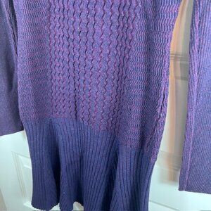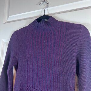 Lacoste Purple Wool Blend Zig Zag Stitch Ribbed Knit Sweater Dress 38 (US 6)