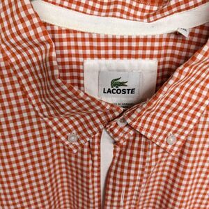 Lacoste Shirt Men 1XL Gingham Coral Collared Shirt Sleeve Button Down