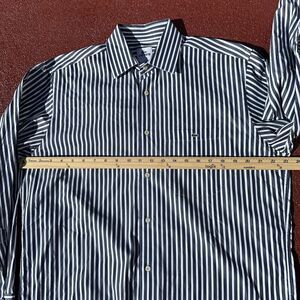 Lacoste Shirt Mens 42 Blue White Striped Preppy Alligator Work Top Logo