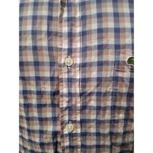 Lacoste Shirt Mens Large L Size 42 Button Down Brown Blue Plaid Croc Logo Preppy