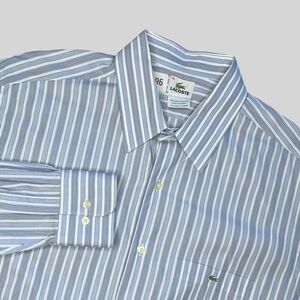This Lacoste Shirt Mens 45 Blue Striped Button Up Preppy Casual Dress Workwear