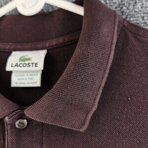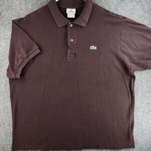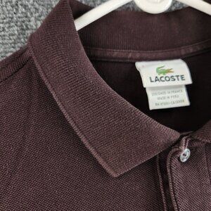 Lacoste Short Sleeve Polo Shirt Brown Size 7 Knit Croc Logo Embroidered Collared
