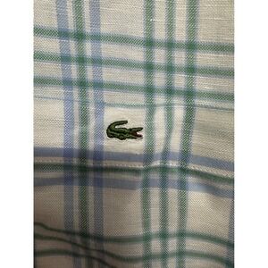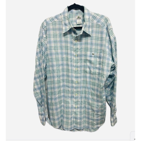 Lacoste Size 44 Men's Casual Shirt Plaid Check Long Sleeve Authentic Blue White