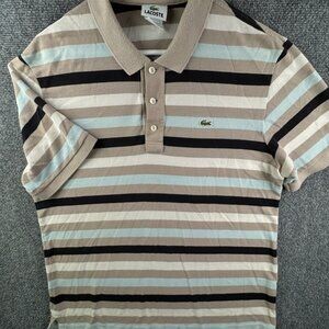 Lacoste Size 6 Short Sleeve Polo Shirt Striped Beige Blue Cotton Adult Croc Logo