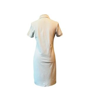Elegant soft blue and white polo dress by Lacoste. Features a classic collar and button placket.