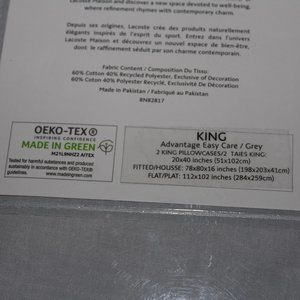 Lacoste Solid Sheet 4 Piece Grey 60% Cotton 40% Blended Polyester