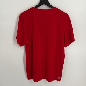 Classic red tee with iconic blue crocodile logo. Soft and stylish. Ideal for casual outings. Excellent preowned, like new condition. Approximate measurements: 22 inch pit to pit, 28 inch length.