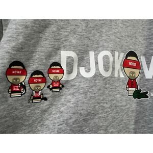 Elevate your tennis wardrobe with this Lacoste Novak Djokovic YSY Crewneck Sweatshirt. This preppy and classic sweatshirt features a graphic print of Novak Djokovic, one of the greatest tennis players of all time. The sweatshirt is made of comfortable cotton material and has long sleeves, a crew neck, and a regular fit for easy wear.