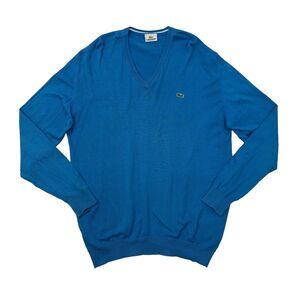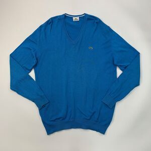 Lacoste Sweater Mens 6 Paris Blue V Neck Cotton Jumper Pullover Alligator Logo