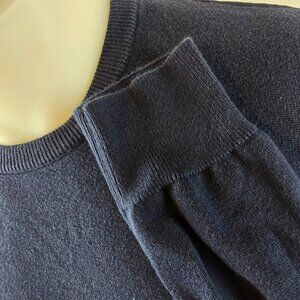 Timeless Lacoste cotton crewneck sweater in navy blue with the iconic green crocodile logo on the chest. Lightweight and comfortable knit perfect for casual or dress wear. A stylish staple from a classic brand.