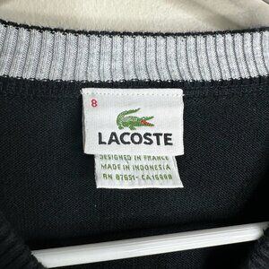 Lacoste Sweater Mens Sz 8 US XXL Black Cotton V Neck Long Sleeve Logo Pullover